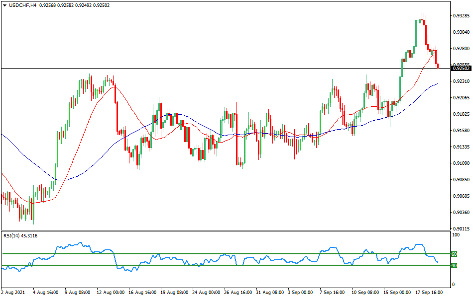 At the Asian trading on Tuesday, this currency pair is trading with a decrease in price, remaining within the current support level at 0.9212 and at the resistance level around the 0.9284 mark.