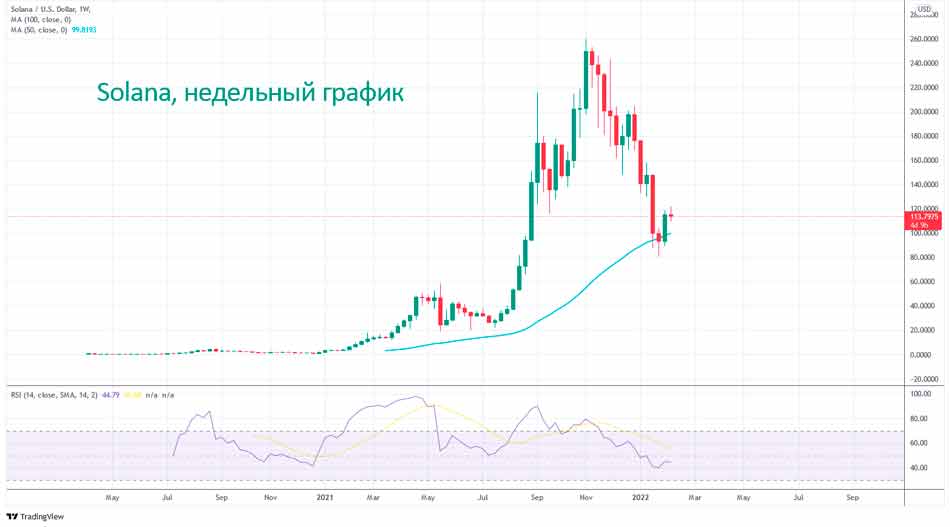 У Соланы был потрясающий год в 2021 году, который вырос примерно с 2 долларов в начале года до 260 долларов к ноябрю. Но в последние три месяца Солана страдает из-за негативных настроений на крипторынке, которые тянут SOL/USD вниз.
